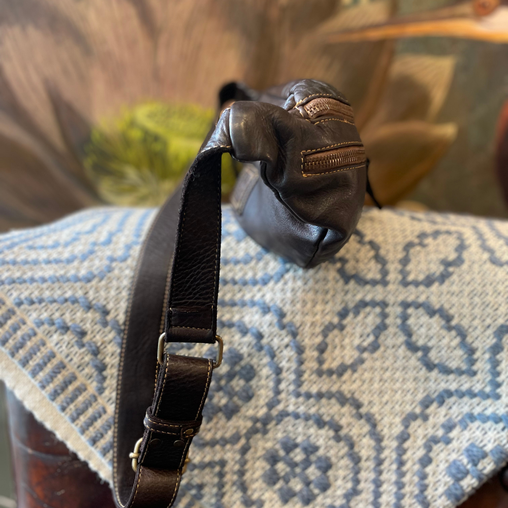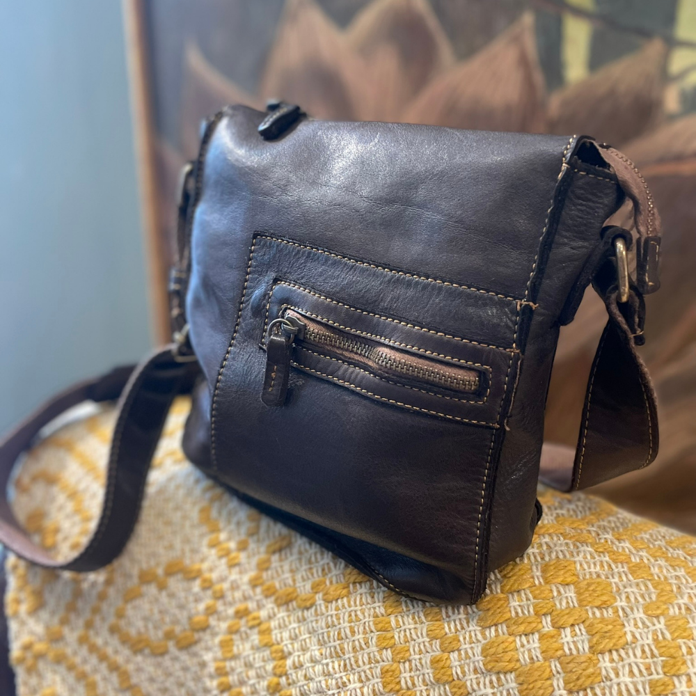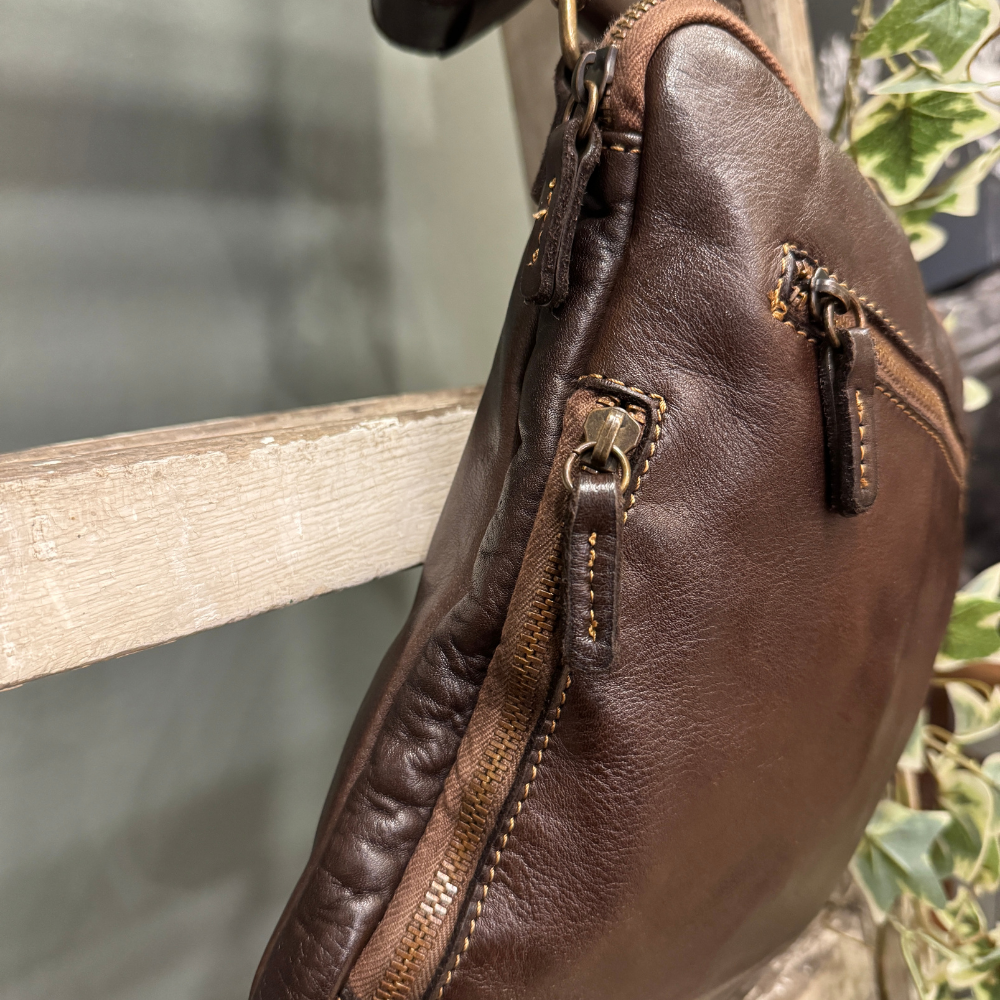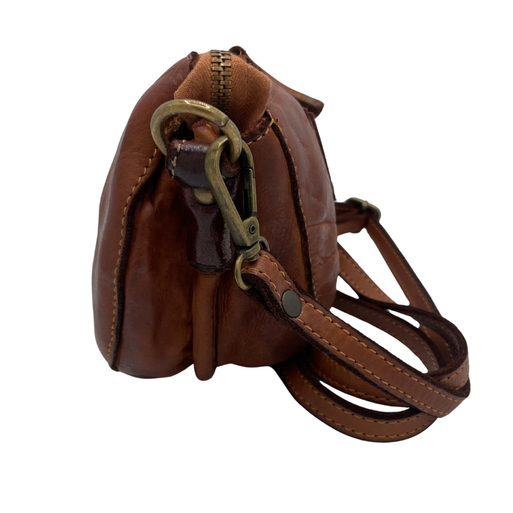 Il marchio Campomaggi è sinonimo di borse artigianali con anima. Ogni pezzo è realizzato con pelle conciata al vegetale e rifinito a mano, per un effetto volutamente “vissuto”, unico e irripetibile.