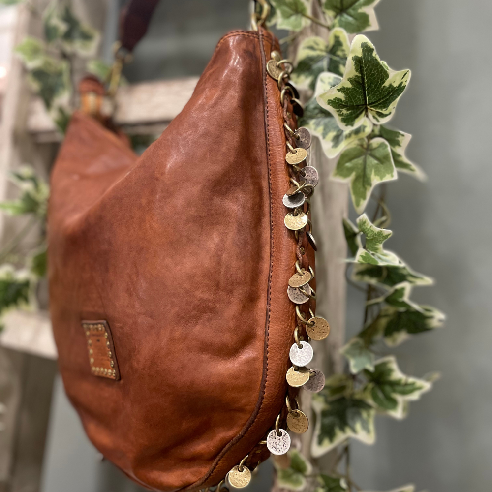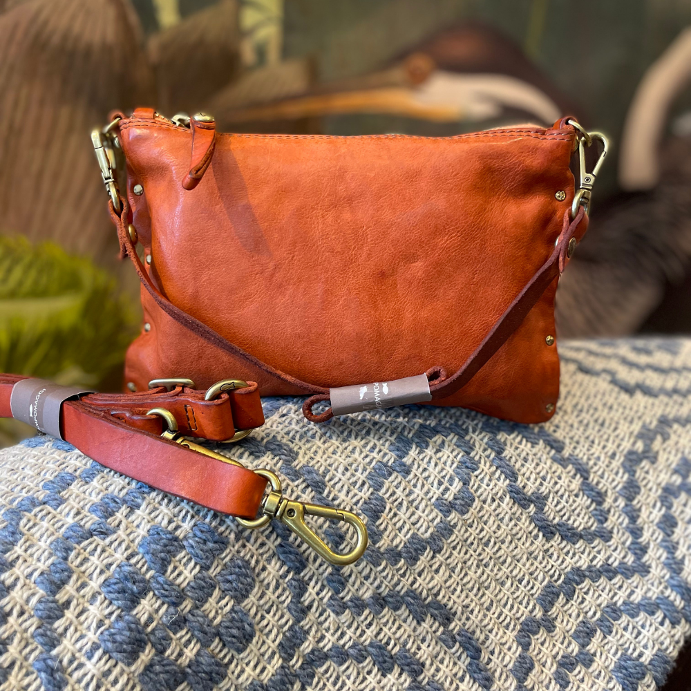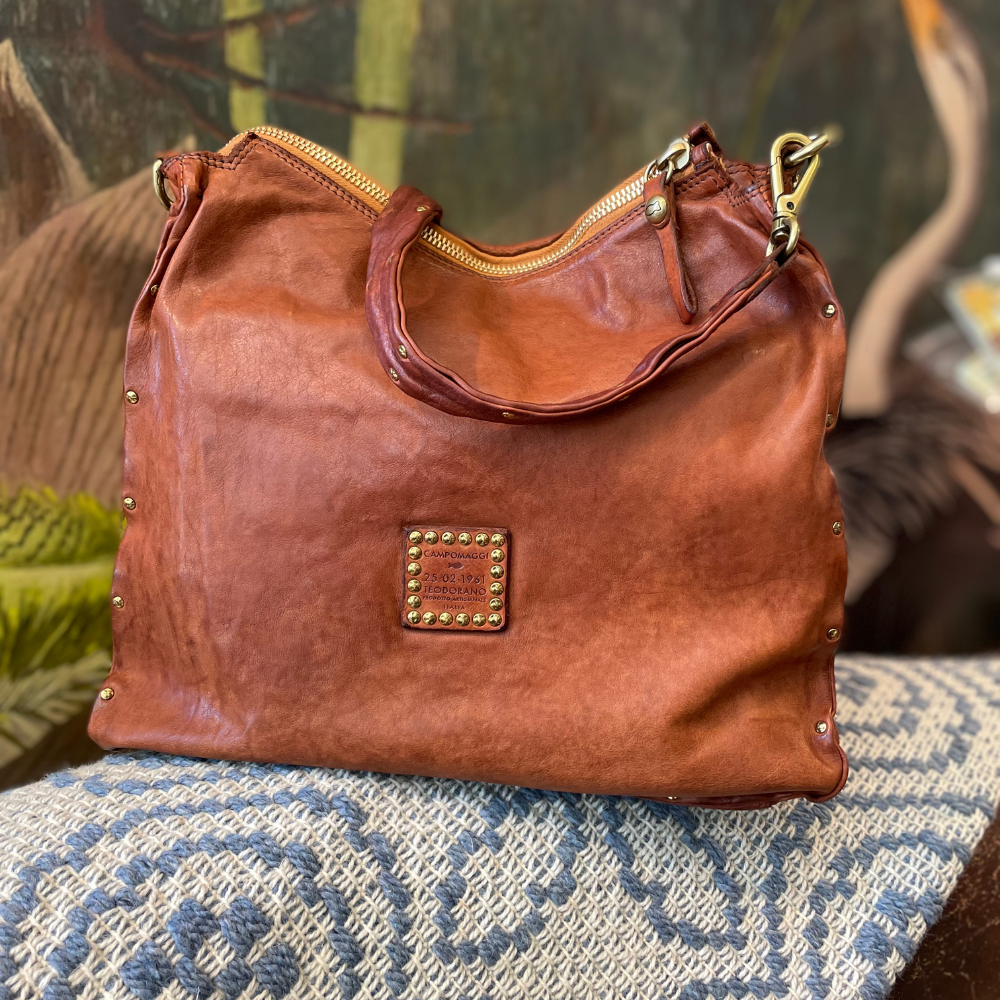 Il cuore dello stile Campomaggi è la concia vegetale e il particolare trattamento di lavaggio che rende la pelle vissuta, morbida e ricca di sfumature. Ogni borsa ha una sua personalità: piccoli graffi, variazioni di colore e imperfezioni sono segni distintivi di un prodotto autentico.
