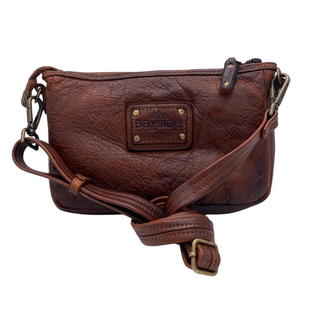 Il colore cuoio esalta la texture naturale della pelle e il carattere vissuto tipico della lavorazione artigianale vintage Bayside, rendendo ogni pezzo unico e irripetibile.
