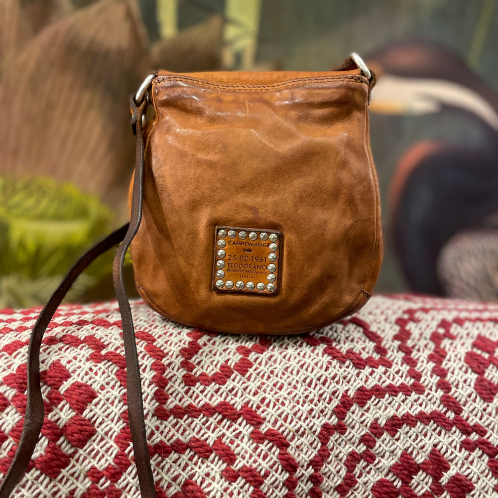 La Campomaggi Giada è una tracollina in pelle di vacchetta tinta in capo che unisce eleganza artigianale e dettagli decorativi di forte impatto. Arricchita da strass color miele e motivi floreali, questa borsa esprime il lato più raffinato e femminile dello stile Campomaggi, senza rinunciare al carattere deciso tipico del brand.