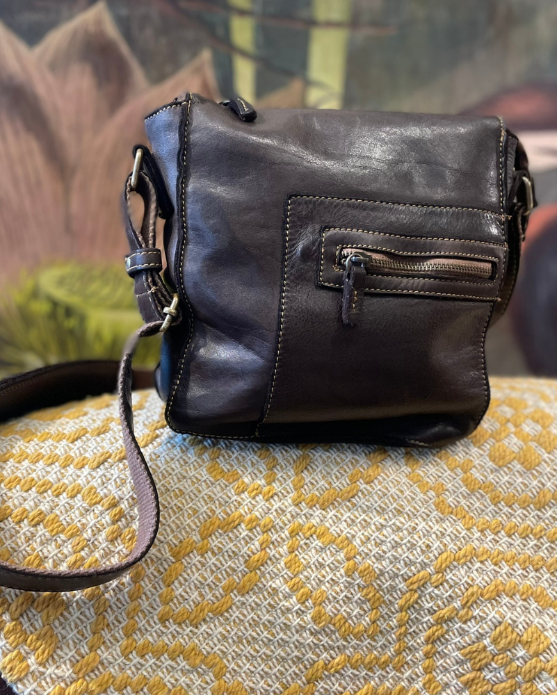 La Dafne è dotata di due manici fissi che permettono di portarla comodamente a mano e di una tracolla regolabile e removibile, così da adattarsi con naturalezza a ogni esigenza. L’interno, foderato in cotone, ospita una taschina con cerniera per custodire in sicurezza gli oggetti personali, mentre la chiusura con bottone a clip garantisce praticità e sicurezza. Con le sue dimensioni di 17 x 7,5 x 14 cm, è la scelta perfetta per chi desidera una borsa Campomaggi originale compatta ma capiente quanto basta per l’essenziale.