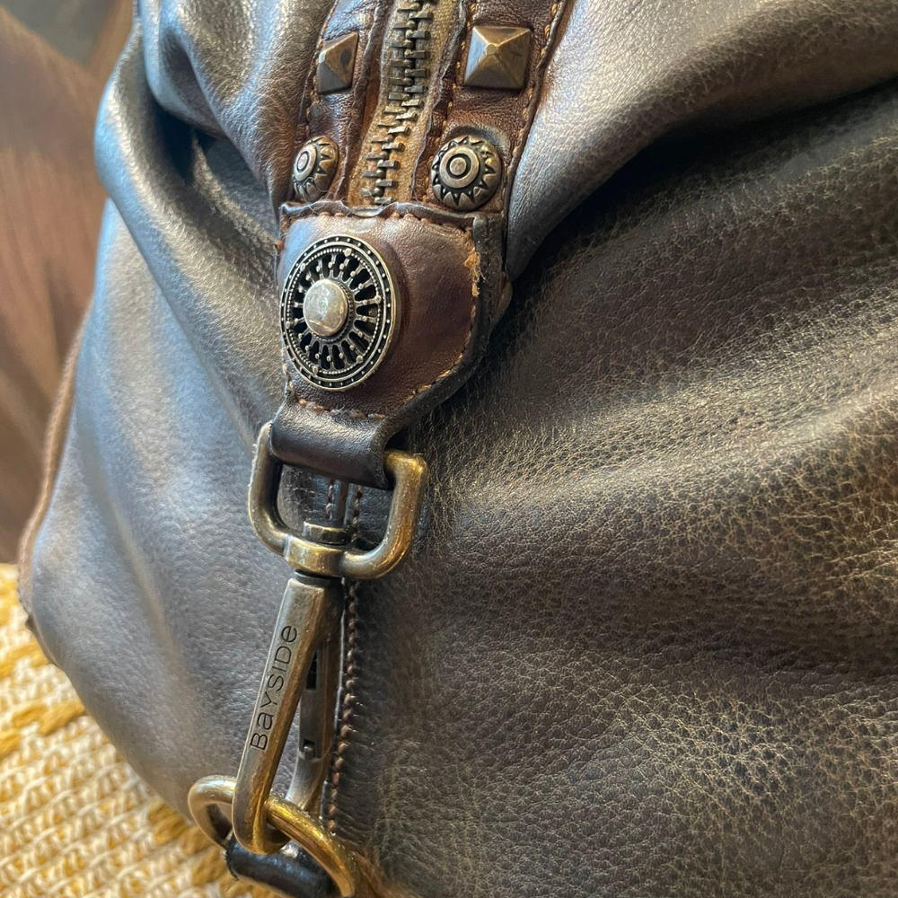 Lo zaino Bayside BS339B è un accessorio dal carattere deciso, pensato per chi ama uno stile vintage rock autentico e distintivo. Realizzato in pelle di vitello lavata, spazzolata e tinta in capo, presenta una lavorazione artigianale che conferisce alla pelle una texture vissuta e profonda, unica in ogni esemplare.