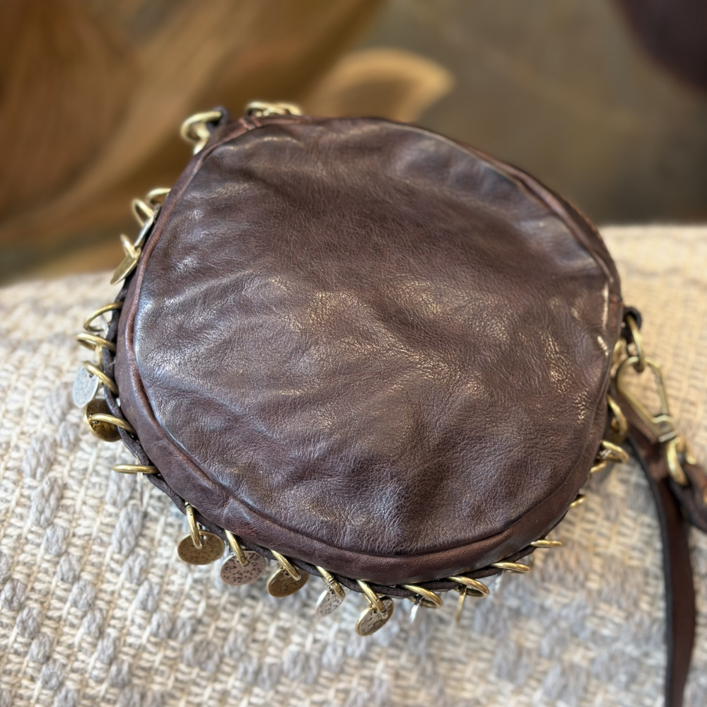 SIRIA monospalla in pelle cognac con rivetti oro by Campomaggi